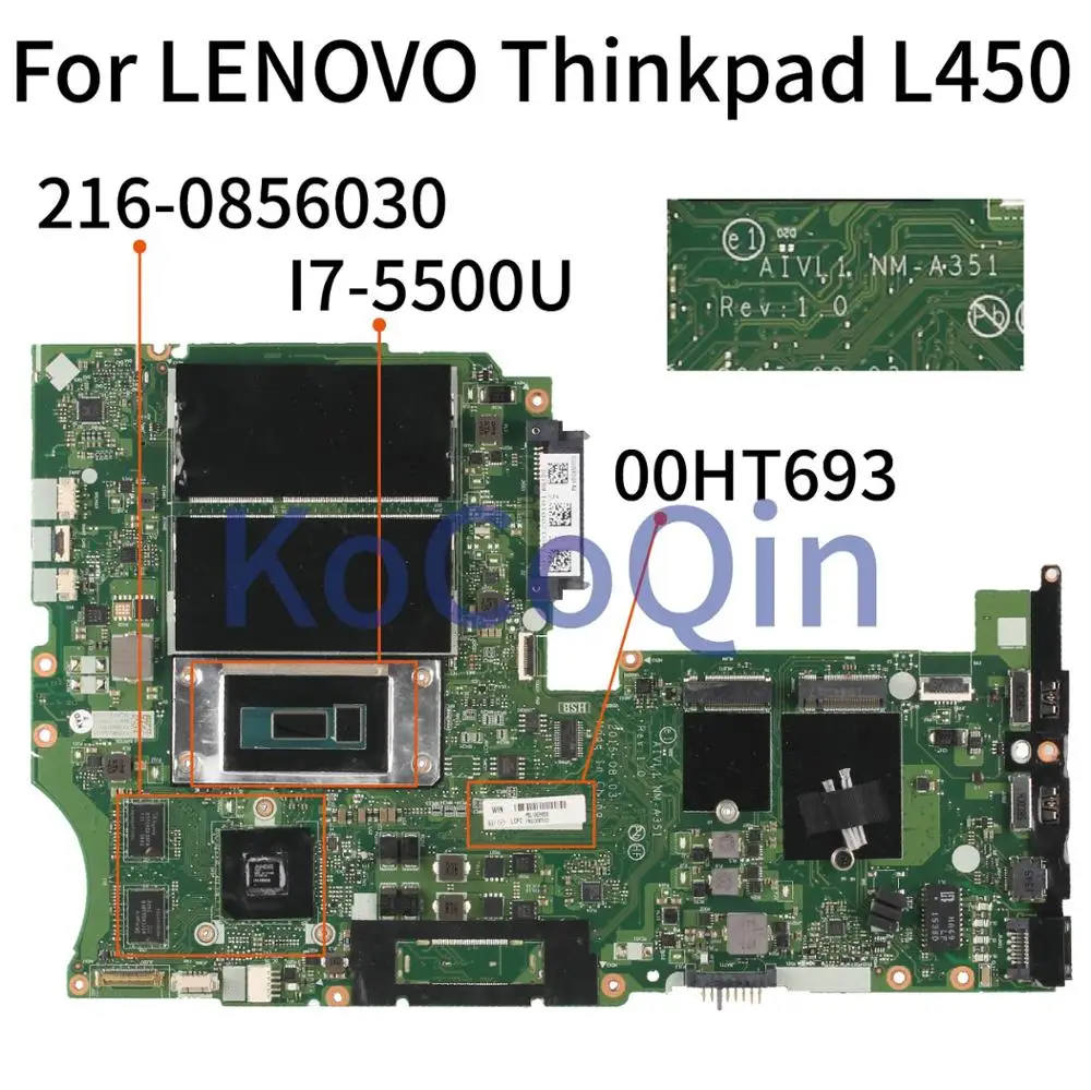 price reduction KoCoQin Laptop motherboard For LENOVO Thinkpad L450 I7-5500U Mainboard 00HT693 AIVL1 NM-A351 216-08